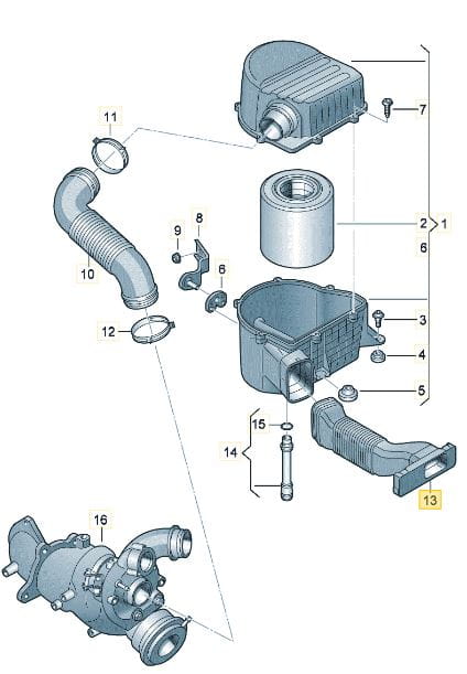 - Króciec kierownica wlot powietrza do filtra powietrza silnika