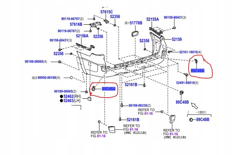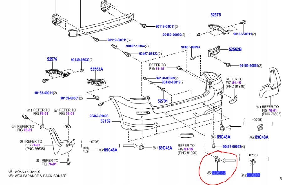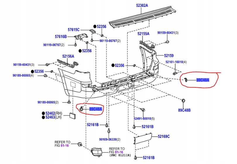 - ŚRODKOWYCH CZUJNIKÓW PARKOWANIA TYLNEGO ZDERZAKA COROLLA VERSO 2004-2009
